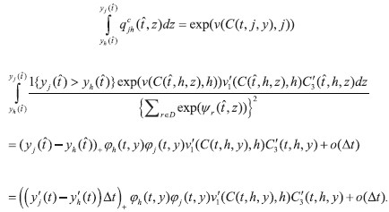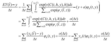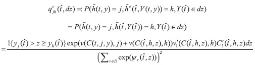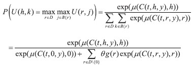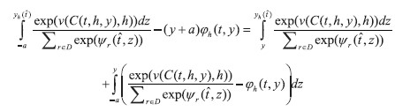 For h = 0, φ0 ( t,y) is obtained by replacing the numerator in (14) by exp( μ( C( t,0, y),0)). We note that (14) differs from (12) in that the exponential of the systematic parts of the utilities are weighted by the opportunity measure, { θ g(r)}.