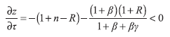 To see the effect of the public pensions on labour supply, we differentiate z with respect to τ, which is derived in equation (24) as follows:  | (24) |