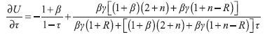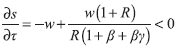 Next, we will examine the impact of the introduction of public pensions on savings. Equation (25) shows the derivative of savings s with respect to τ, the contribution rate for the pay-as-you-go scheme, which shows the effect of the pay-as-you-go scheme on savings.  | (25) |