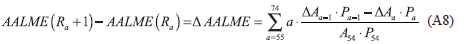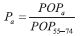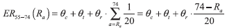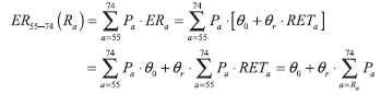 where  is the share of population of age a on the total of population aged 55-74;  is the employment rate at age α.