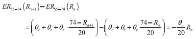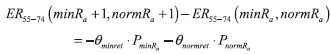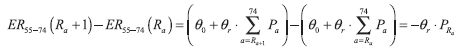 The employment rate at age 55-74 can be written in the following way:  | (A6) |
