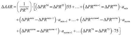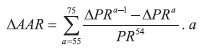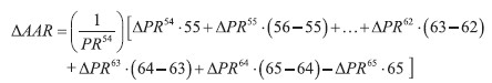 9 See Scherer ( 2002) for a proof of this static formula, which requires only cross-sectional data. He also points out that that this static calculation will be different and potentially misleading compared to a dynamic calculation that allows for the evolving age structure of the population. The static calculation is used here because of it computational simplicity and because the only interest here is in evaluating the effect of a marginal change in the AAR in response to a policy change.