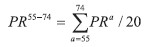A1 The relationship between aggregate and single-age participation rates The aggregate participation rate of the age group 55-74, PR55-74, is related to single-age participation rates, PRa, according to:  | (A1) |
