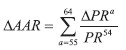But if everyone is assumed to retire between the ages 55 and 64, ΔPR54 = ΔPR65 = 0 then:  | (A21) |