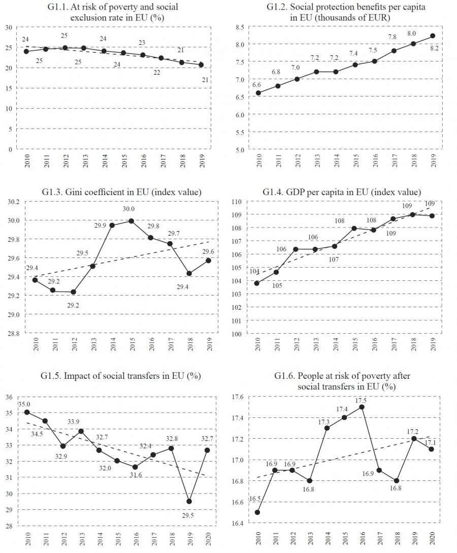Before we continue with the econometric analysis, we close this chapter with the following indication: the decade after the start of the eurozone crisis is a period of economic growth and rising social protection benefits, but it has not resulted in significant reduction of poverty and income inequality.