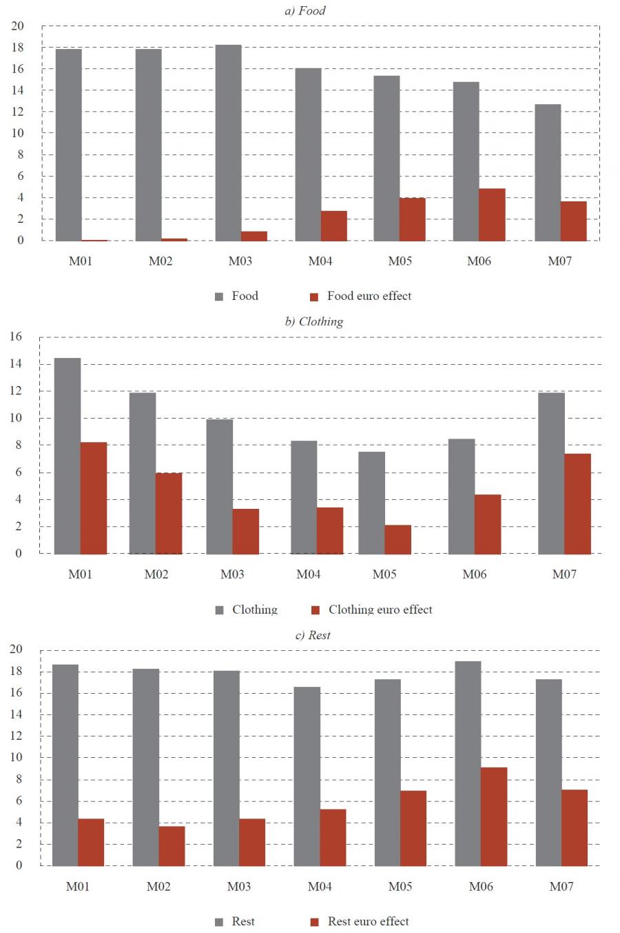The observed euro effect mostly intensifies in June and July (particularly for the rest category), which is probably related to the general concept of tourism-led inflation (Tkalec and Vizek, 2016).