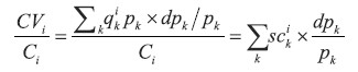 where sck indicates the share of expenditures spent by household group i on category k, and ![]() ![]() ![]() ![]() the percentage variation in prices for this category.