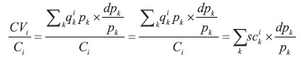 Distributional effects of inflation are assessed based on household exposure to the change in the prices of the items that make up households’ consumption baskets. This is expressed in terms of change in purchasing power following the conceptual framework of the compensating variation approach (Deaton, 1989). The compensating variation (CV) measures how much expenditure can be decreased (increased) when consumer prices fall (rise) so that the utility level remains the same as before the price decrease (increase). For household i, the CV is measured relative to total household expenditure (Ci). This is a measure of the change in household purchasing power resulting from changes in consumer prices underlying inflation; that is, the price change in item k (indicated as ) weighted by the share of expenditure that is spent on item k (scik,), defined as , where pk and qik refer, respectively, to consumption item k’s price and to the quantity purchased by household i, and ci refers to the household’s total expenditure | (1) |