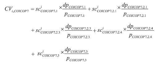For France, Germany, Italy, and UK, the paper is extended with a granular analysis at the COICOP-1-digit level. This requires one to properly separate the energy components from COICOP categories 4 (Housing, containing category 4.5 “Electricity, gas and other fuels”) and 7 (Transports, containing category 7.2.2 “Fuel and lubricants”). In order to achieve this, the analysis exploits CPI and HBS data at the 3-digit COICOP level and applies the following formula: