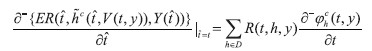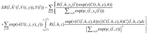 For h = 0, φ0 ( t,y) is obtained by replacing the numerator in (14) by exp( μ( C( t,0, y),0)). We note that (14) differs from (12) in that the exponential of the systematic parts of the utilities are weighted by the opportunity measure, { θ g(r)}.