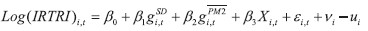 where Log(IRTRI) denotes the implicit recurrent tax rate on immovable property, gi,tSD the growth rate of the stock of dwellings , the growth rate of the average price per square meter, and Xi,t a set of macroeconomic variables with potential impact in the explanatory variable; and εi,t is an error term with the usual assumptions.
