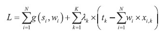 where tnew is the 1 × K vector of projected total values in the future for a given variable x. Let us assume that the distance between the original and the new weight follows a distance function g( si, wi), so that the new weights can be obtained by minimizing a Lagrangian function with respect to the new weights: