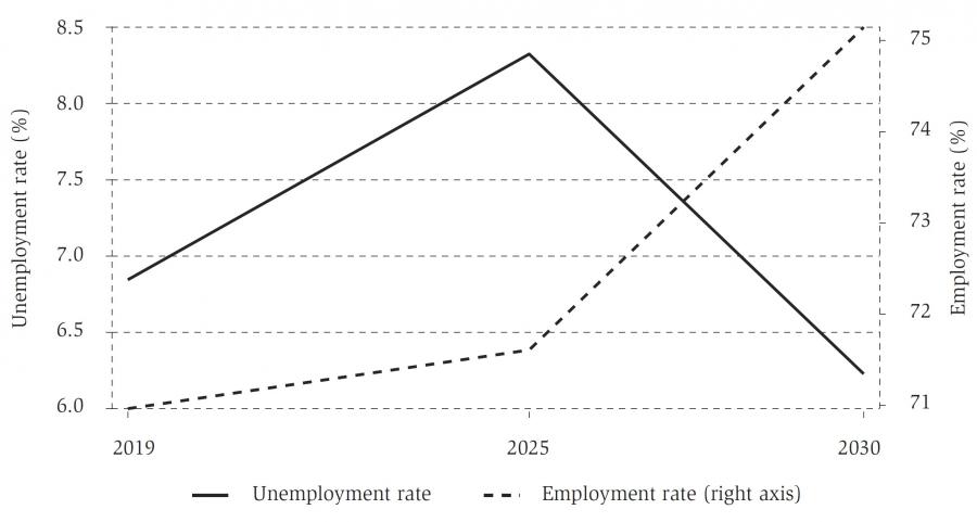 Figure 2Employment and unemployment projections in the EU-27, 2019-2030 DISPLAY Figure